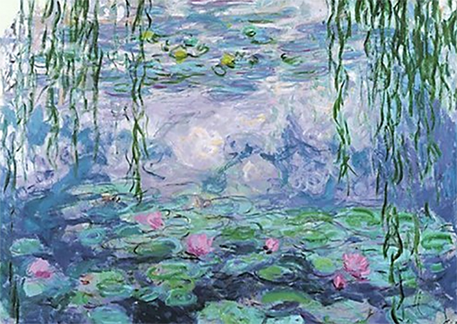 Sometimes you have to break the rules. Your Layered Field does not have a strong focal point, but neither does Claude Monet's "Water Lilies" that I've attached. In fact he breaks another rule by putting "distracting" images at the edge of the frame as you point out I have done in my February entry. Don't change a thing. Monet would be proud. |