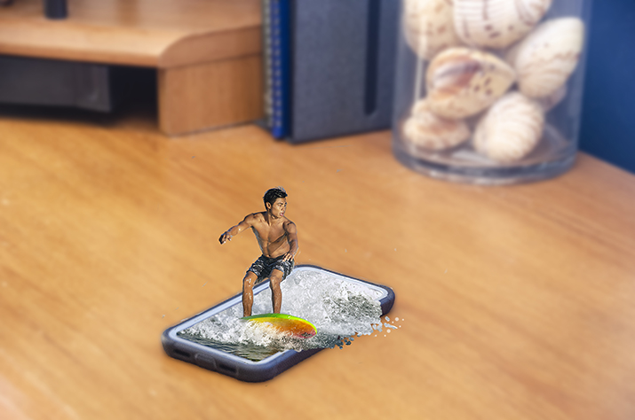 As someone who uses frames/phones with people/things protruding from them in a 3D fashion, I am partial to your effort. I've attached an incomplete composite that illustrates that sometimes "less is more." My waves are simplified, and the man dominates the scene in a 3D manner. Your composite is breathtaking, but you have an awful lot going on. It doesn't matter whether you have a surfer or a bird, they get lost in the waves, and the 3D aspect is reduced. You have a wonderful wave in your image, but as in nature it's difficult to tame. This is certainly worth working on. |