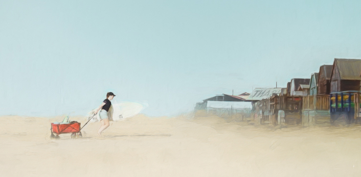 The mantra of my camera club's judges seems to be "crop." I've taken the liberty of cropping your image so that the girl and the delightful houses are more central to your image. The overall image has a soft, delightful painterly effect that I think benefits from the crop. This is nice work you managed with one hand tied behind your back! |