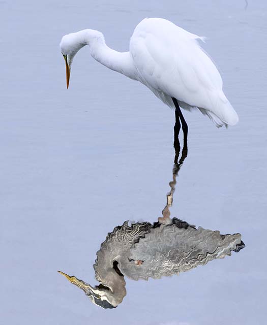 The photo of the shorebird and reflection in Original 1 is a treasure. I'm a sucker for taking pictures of bird reflections and have way too many. There are 2 things at work for me, here. The first is "if it ain't broke, why fix it?" The bokeh, for me, draws attention away from your lovely bird. The second is to share with you my own frustration with my predilection to take so many reflection pictures. I decided to provide a different reflection for a classic pose for one of my wading bird photos. Just thinking outside the box I constructed for myself. |