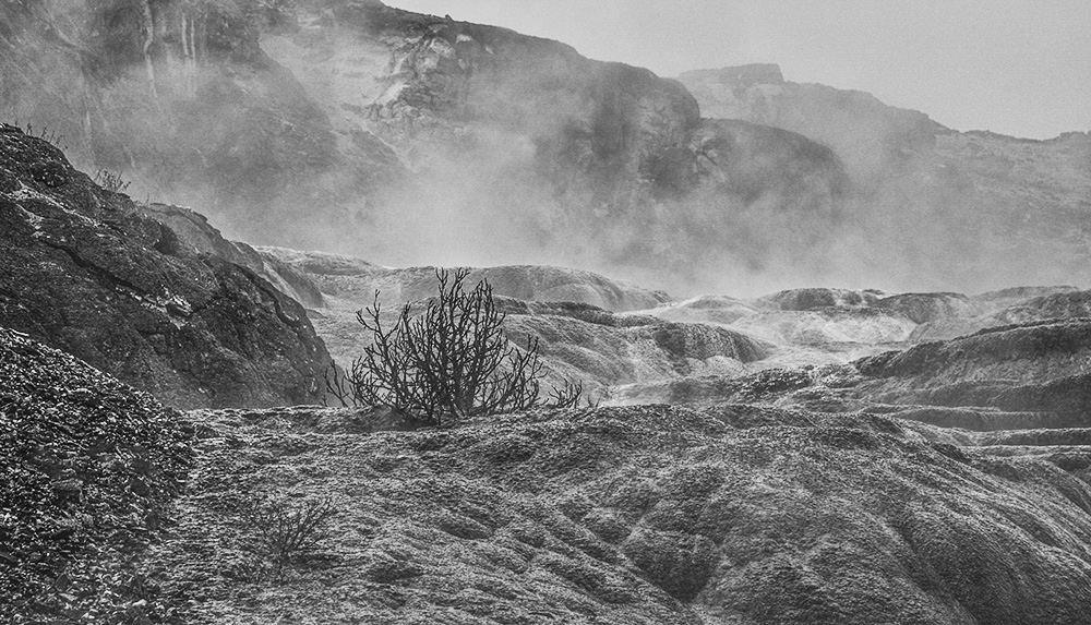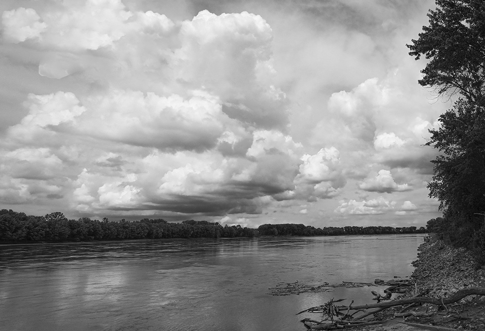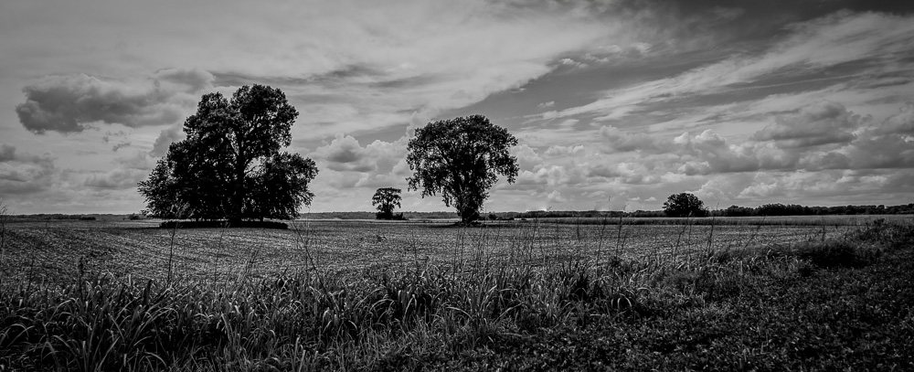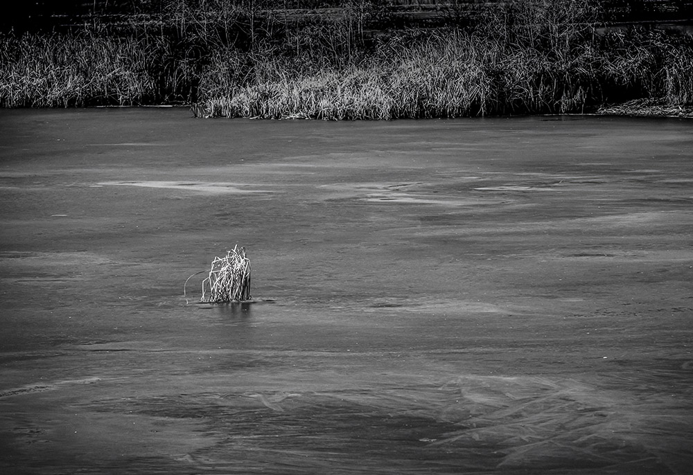 The black and white version brings out the structure of the landscape better than the color one, to my eye. The reflection of the clouds and trees in the lake is beautiful. Definitely one for the wall I would think!