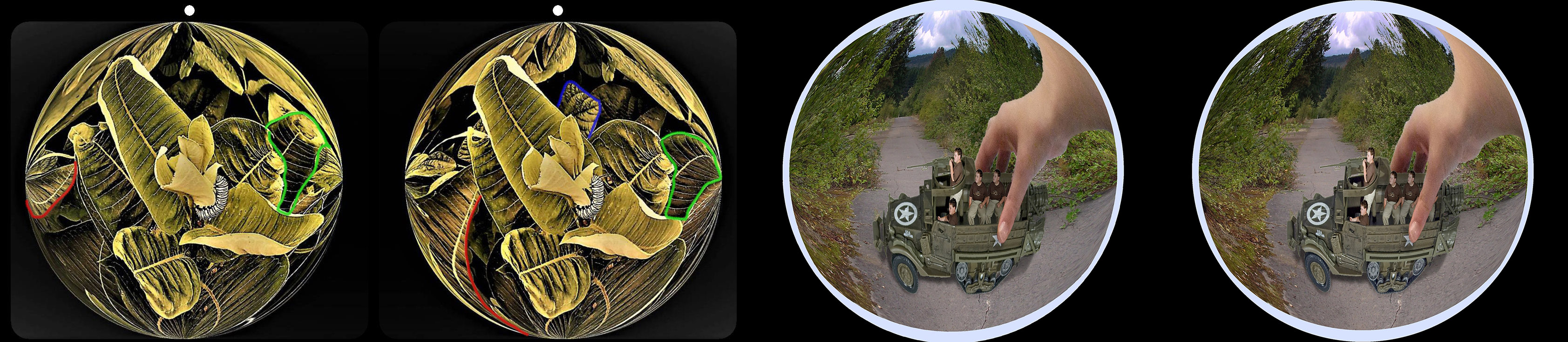 Interesting image, but only the center has good 3D - the worm in the middle of the flower. When a square image is processed through spherical deformation in SPM it looks good in the middle but the images on the outside of the sphere at the 45 deg. angles are quite compressed and hard to look at. I try to put a black frame around the square image about 1/10 the size of the image and then when SPM spherically distorts it, the exaggerated corners are not so compressed. |