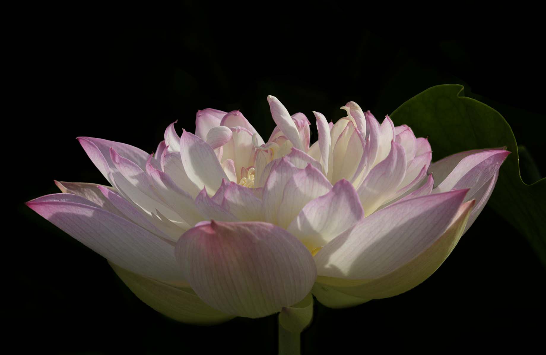 I have taken into consideration the comments given. I've redone the lotus with a black background and with a bit of the leaf I liked. Comments? |