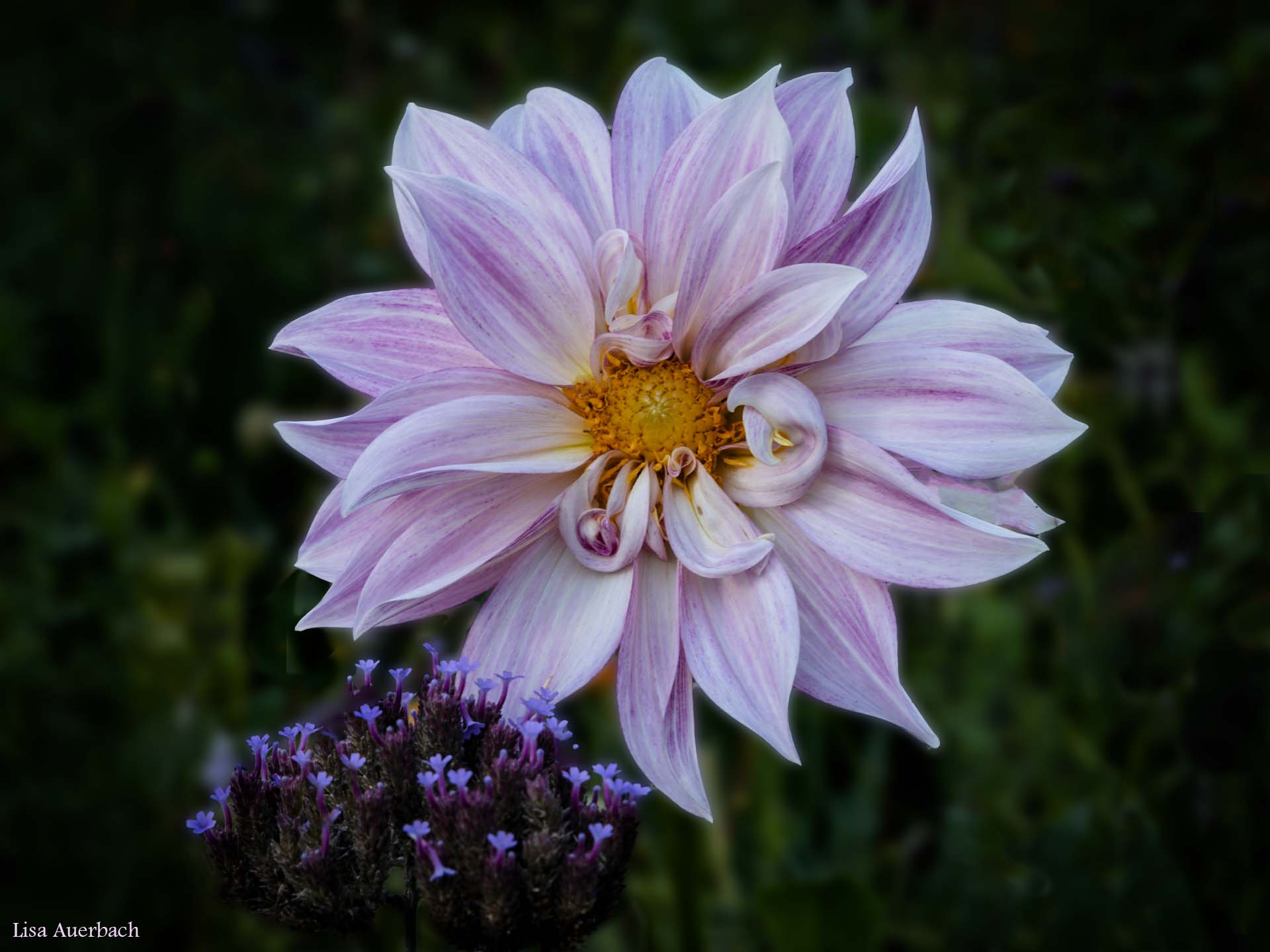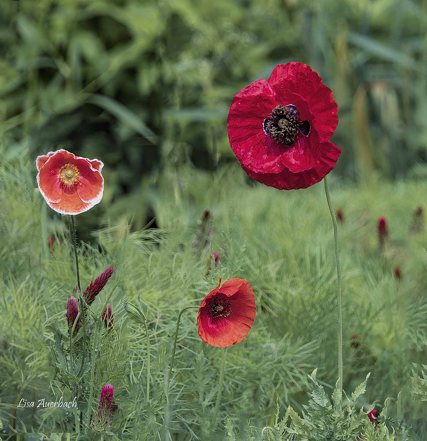 I find the colors interesting. Mother Nature gives us so many rewards. The way you have cropped the image gives it an abstract feel. That makes it fun. I wonder what a smaller f/stop would have given you? I also think the top flower could be an image by itself. |