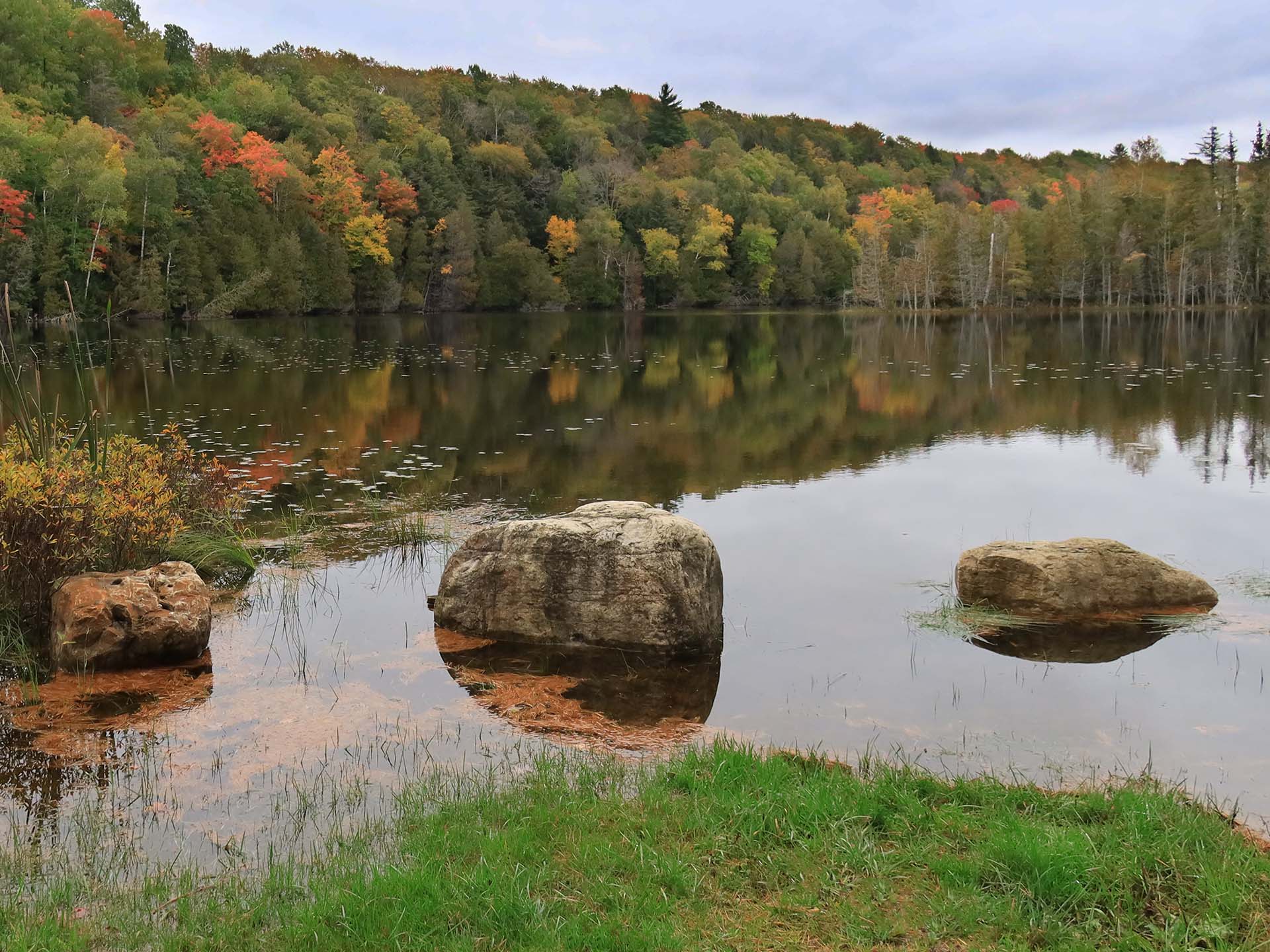I would like to be in this place. The water is soothing. Your treatment of it is well done. I like the foreground rocks and swirling water near them. My attention follows the upstream path. I like your treatment of the trees but think the yellow is a bit bright. |