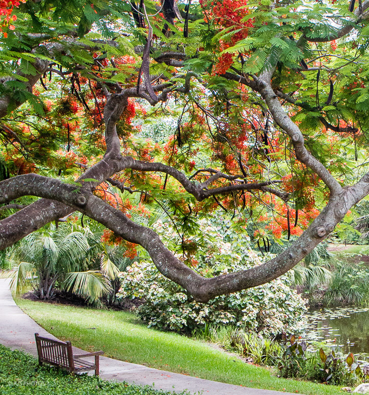 The adjusted photo is my choice. Michael's masking removed the colors and the lightness of the needed to tell the story of a beautiful day in the woods. |