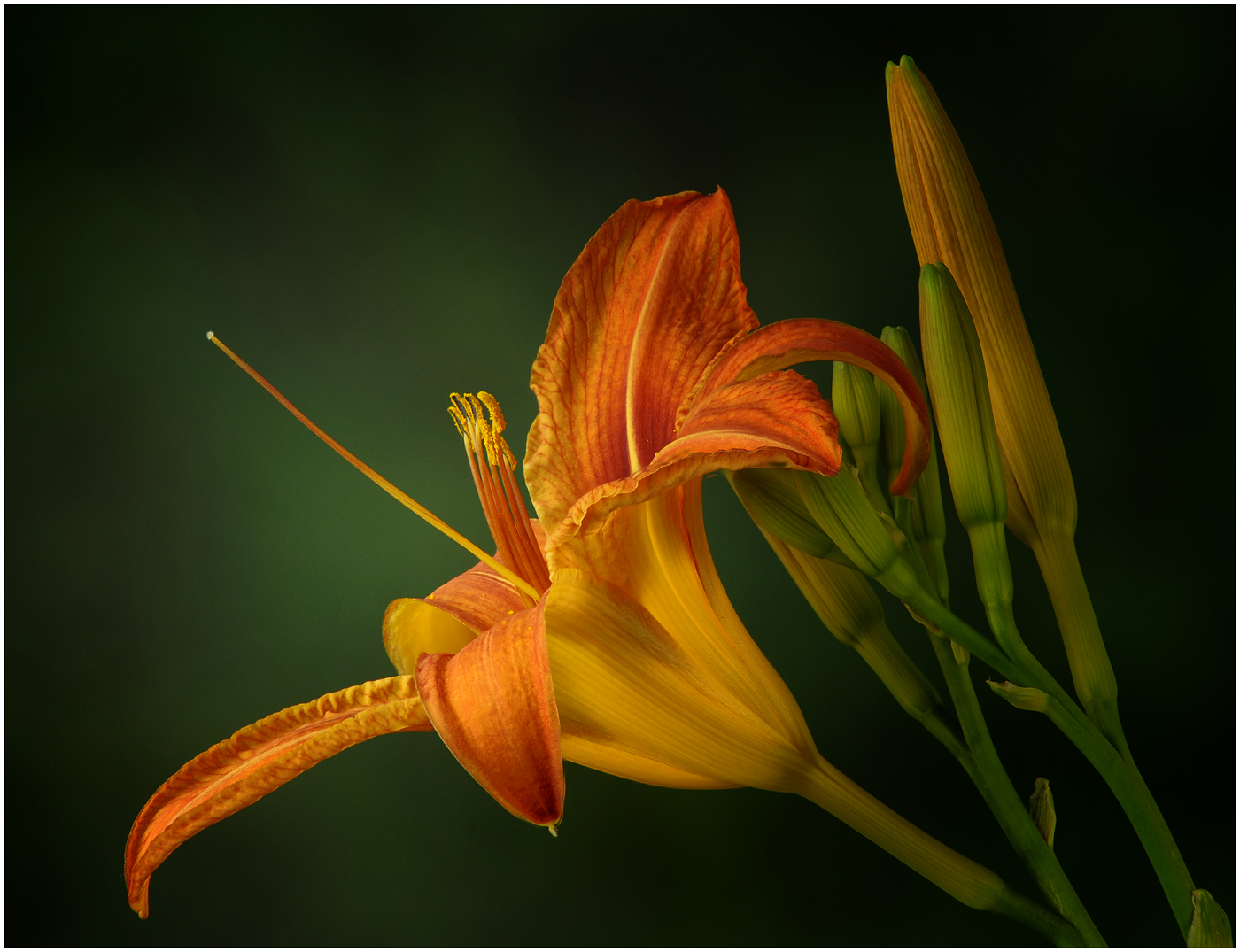 Love the composition in this image. At this location of the camera, it shows more detail about the flower and adds interest to the image. Great background showing the leaves darkened works very well. Great lighting.