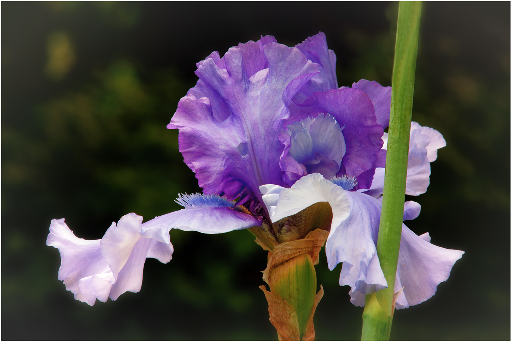 Like your composition with a wonderful background. Like the blurry purple in the background. Great lighting. I agree you could crop some off the sides, bottom, but not the top. |