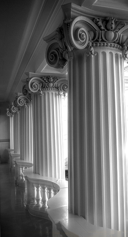Phyllis I think you found the nicest colonnade to photograph outside of Rome. Maybe Michelangelo stopped in Wisconsin on his travel. ;););) But I think you need to give him a little help with the composition. I did try to help and I eliminate the right side of the frame, since, as Art said, there is nothing there to help to image given the strong beauty of the colonnade. And I adjusted a little bit the Levels in PS. Nice image. |