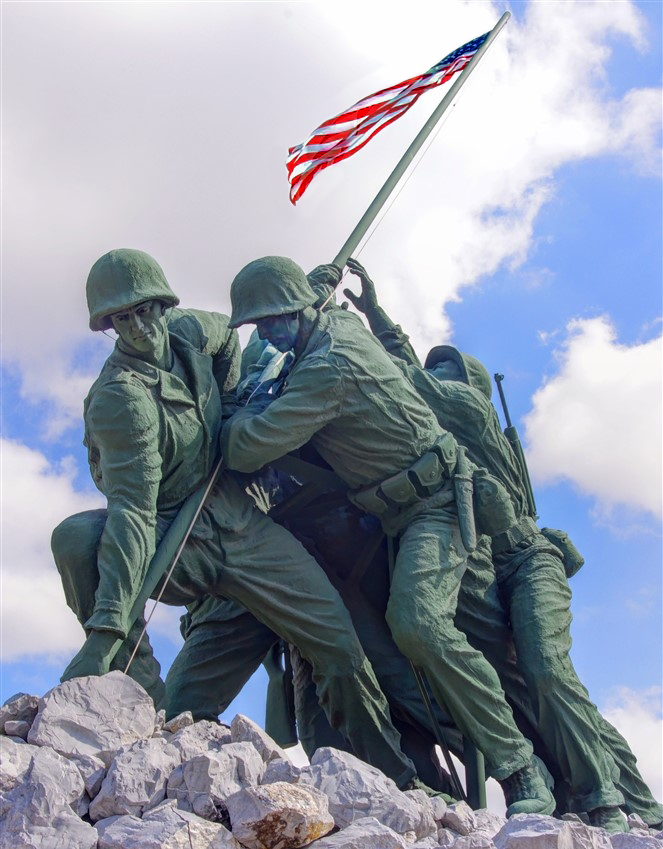 Good job with the exposure on what looks to be a sunny situation! Great color, detail and lighting. I like the crop, although a tad more room at the top above the flag might have given the flag more importance. Good job with bringing up some of the shadows. I worked on the flag in ps, cloning out the ghosting, and selectively darkened the colors. It's not perfect, but perhaps just a little change. Hope you don't mind. I have found that photomatix does a pretty good job of deghosting, after selecting the area of possible movement. |