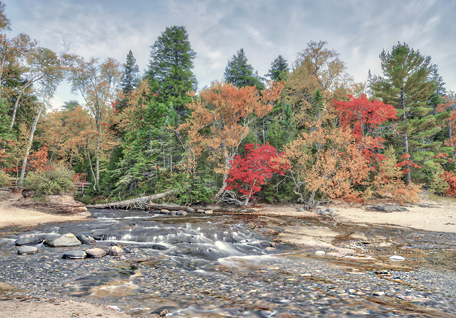 It's amazing how much difference a lens makes. I think both the lens and the camera make a difference in quality of images. Was the original a jpeg? I hope you don't mind, I played around a bit with your image, decreasing the reds a tad, ended up using auto levels, and lightened the white in the water, and sharpened the rocks in the foreground. I also selectively decrease the blue diffraction color a bit. Not sure it's improved, but only a tad different. The composition is wonderful, and the spot looks like a place to spend some time for sure. |