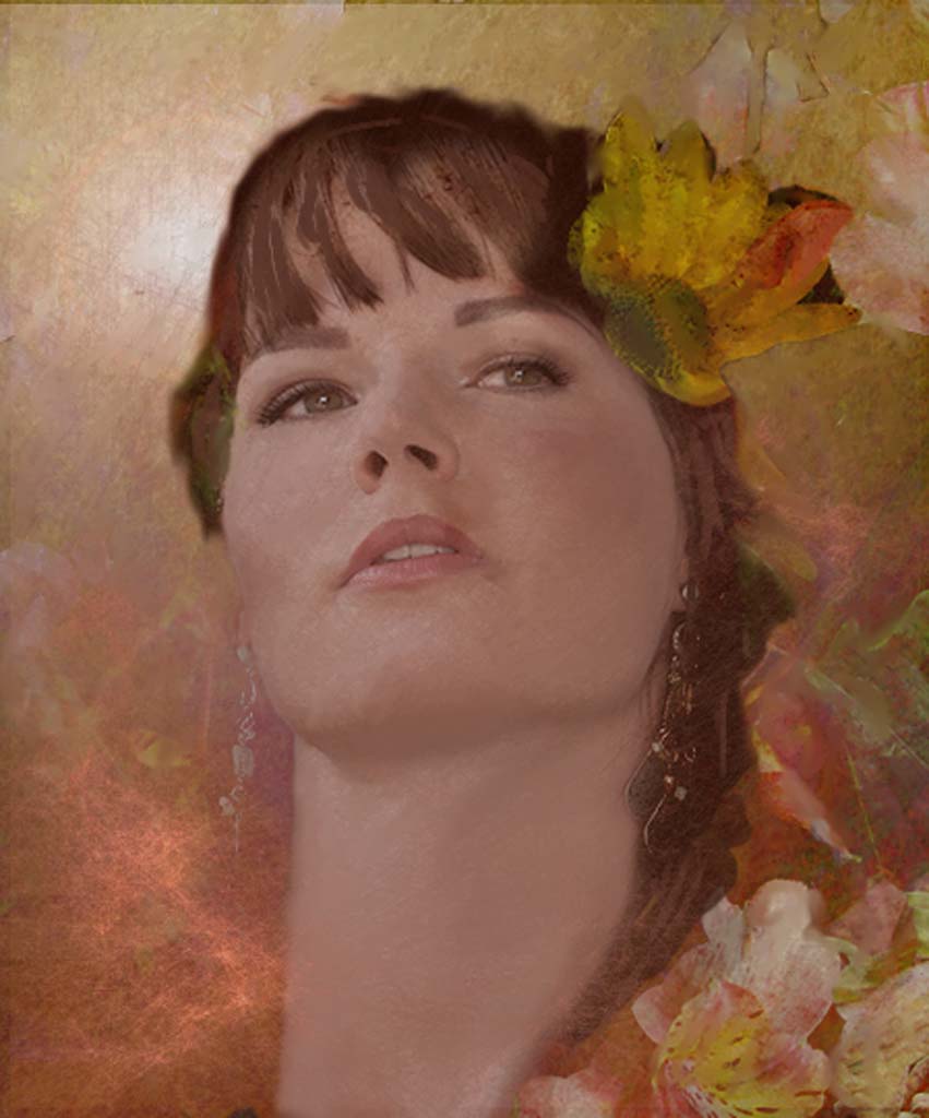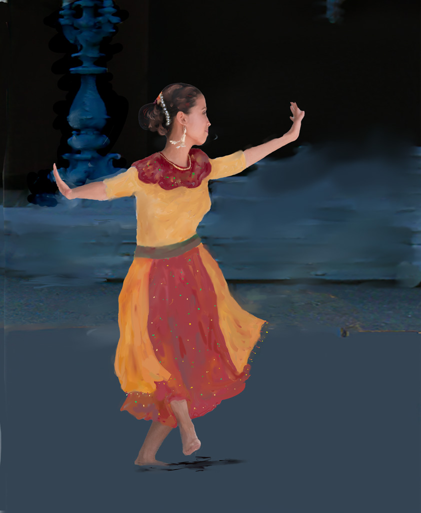 Tom,I love the cropping and the dramatic color. I'm bothered, though, by the blobs of color on her arm. Otherwise, it's certainly an effective painting. |