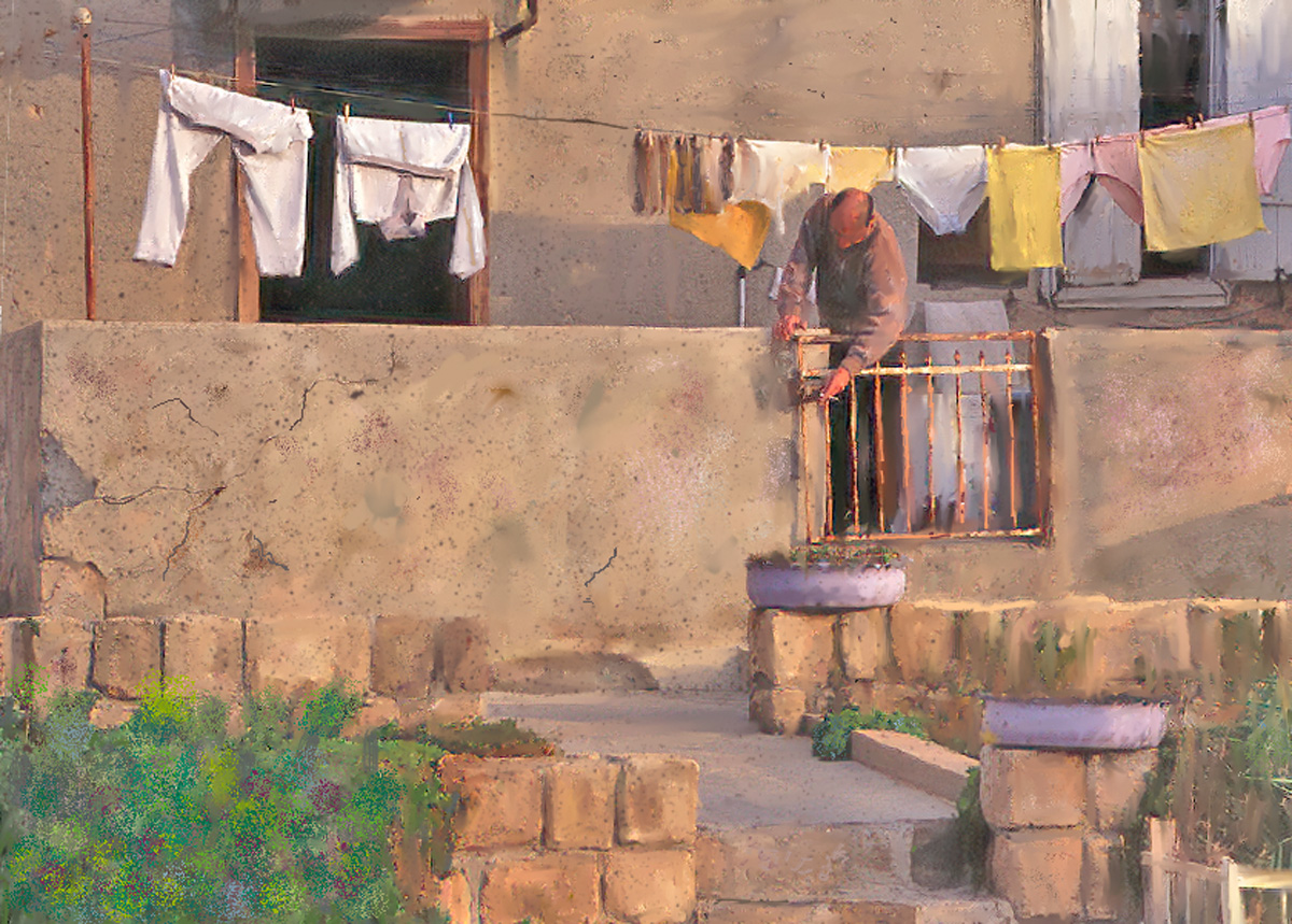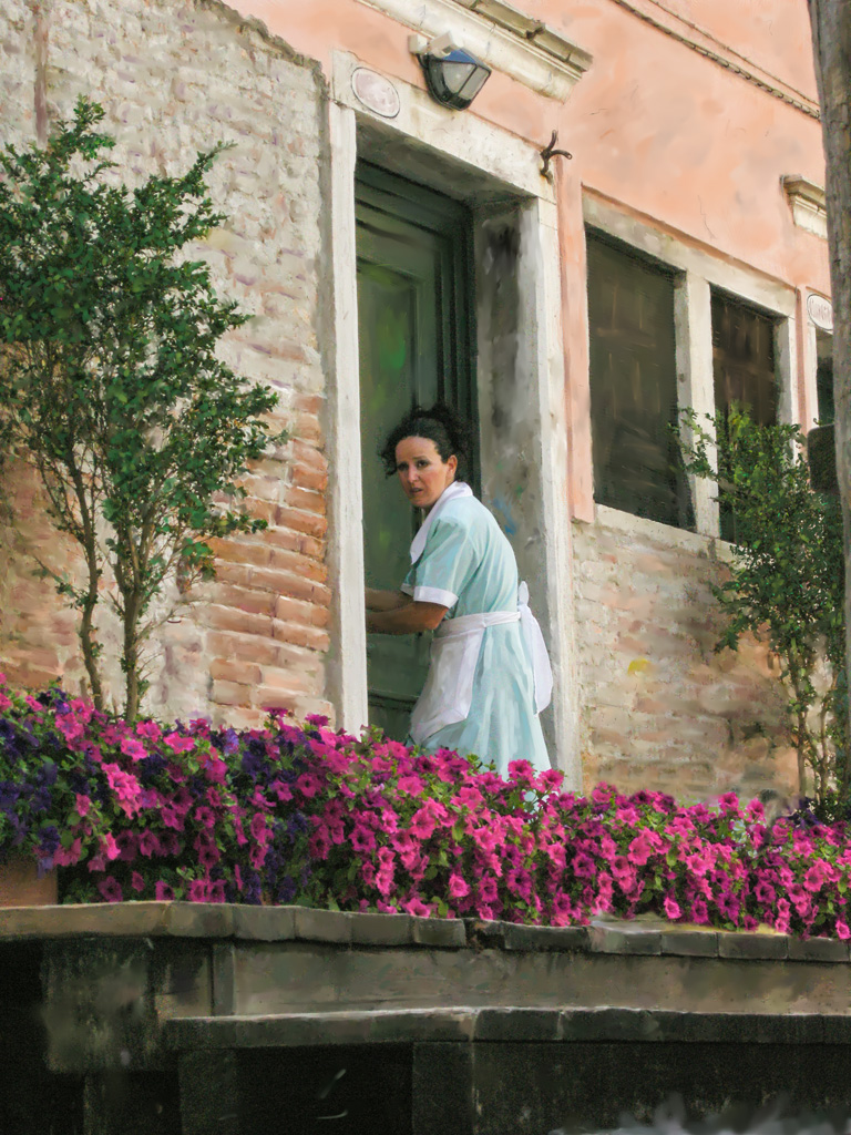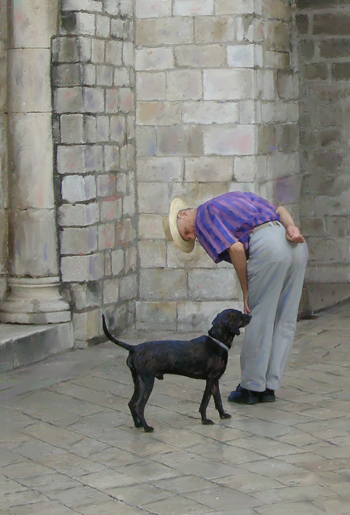Flipping the image of the man definitely improves the composition of this very well-done painting. |
