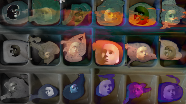 Phillipa, This is clearly a labour of love which I imagine took a fair bit of time to complete. Superimposing the pink clouds over your paint tray created the backdrop against which your mannequin's head would perform. I like the way that you have introduced variation in size, scale and orientation to the heads which works well. The idea of a paint tray being used to build up layers of colour is quite appealing. I hope you don't mind but I played around with running a Linear Gradient through your image and then removed the colour on that selection via Hue/Saturation. This is attached below for information. |