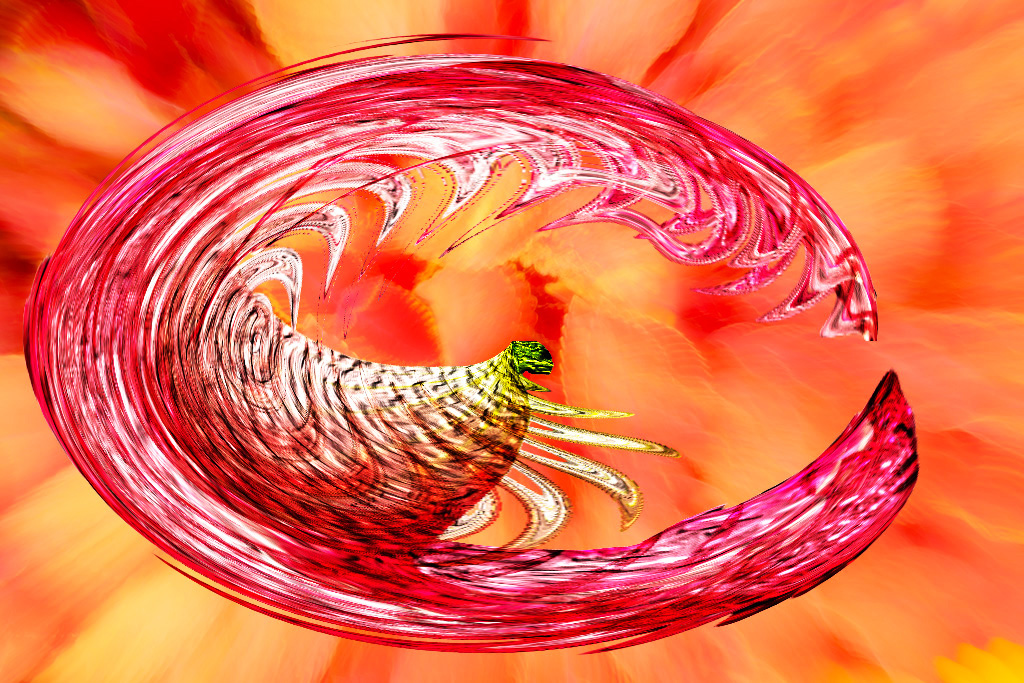 Henry, I have a reputation on this side of the pond as a photographer who doesn't do sharp. Therefore, it will come as no surprise that I am a fan of Zoom Effects, Liquify and Distort Filters. You have used these to good effect in producing your composite. I like images where you can visualise stories from things that are not there; very much a case of joining up the dots. In this case, I see a horse-shoe, rear-facing shark's teeth, an insect fallen into a sticky pitcher plant and a shrimp caught in a web. The zoom effect of the soft-focus background and the overall limited colour palette works well. I wondered whether the visual impact of the image would be stronger if rotated ninety degrees clockwise per the iteration below. |