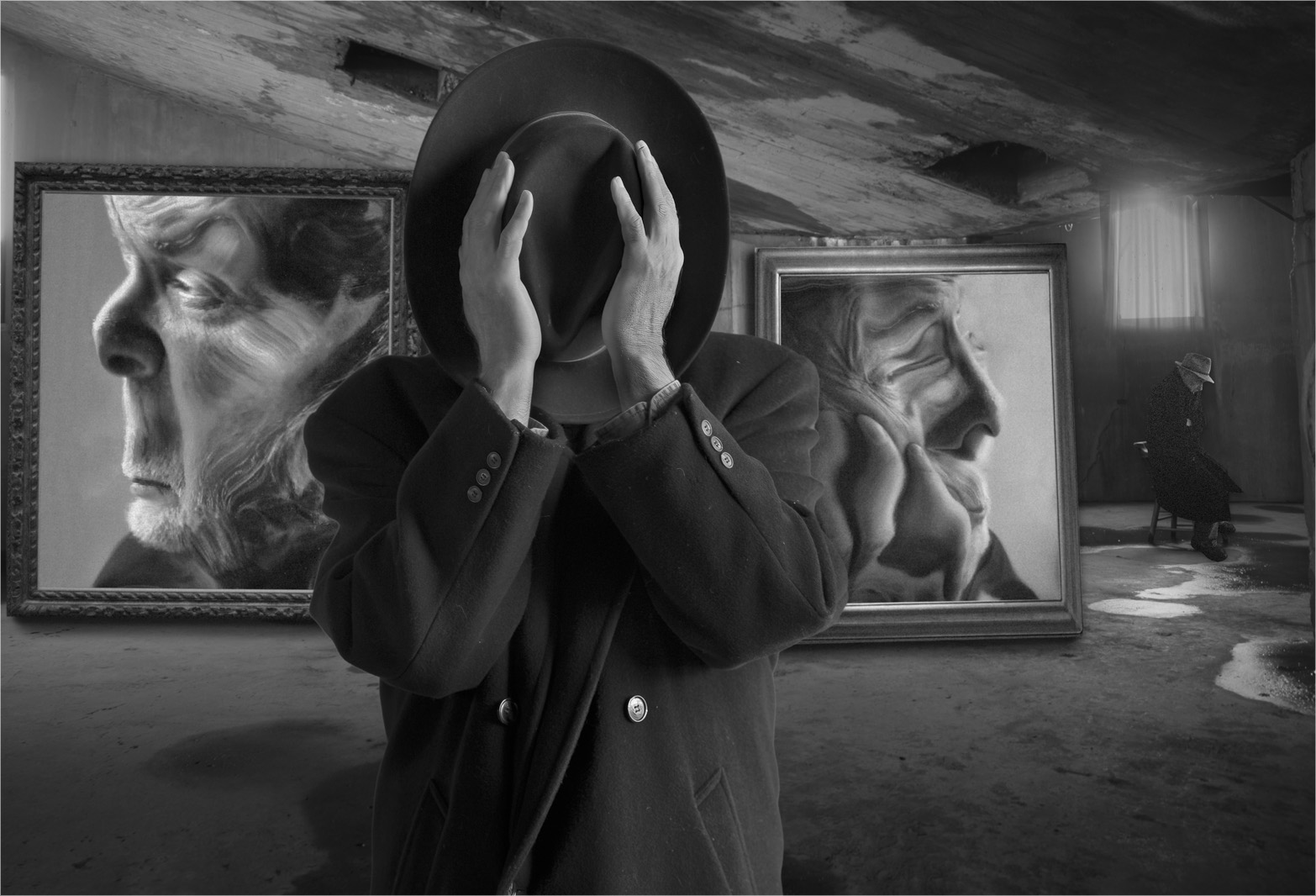 Tom, This is what I would call an academic picture that has a visual story which would not be out of place in a student's dissertation. It poses a visual scenario and encourages the viewer to think about what they are looking at and how the constituent elements relate to each other and complement the whole. Structurally, I like the way that you have placed the anonymous figure as foreground interest and main stimulus for the visual story. The viewer is then encouraged to relate the other elements in the picture and join up the dots. There is a good recession through the picture from the anonymous, blank canvas of the figure in the foreground, through the two distortions of the mind's eye to the reflective figure in the back rear of the room. Compositionally, the central placement of the main figure makes for a visually static image. in order to increase the overall visual dynamic, an off-centre place is preferable. I find the figure on the left a little distracting as he is looking out of the frame and taking the viewer's attention with him. I would prefer not to have this character and to crop him out which would make for a more focussed picture. I have attached such a version below to show a flavour of what I mean. In this version, we travel on a left-to-right visual journey through the picture towards the man in the background and the bright light of the window. Overall, I like the way that your photographic mind works. Well done. |