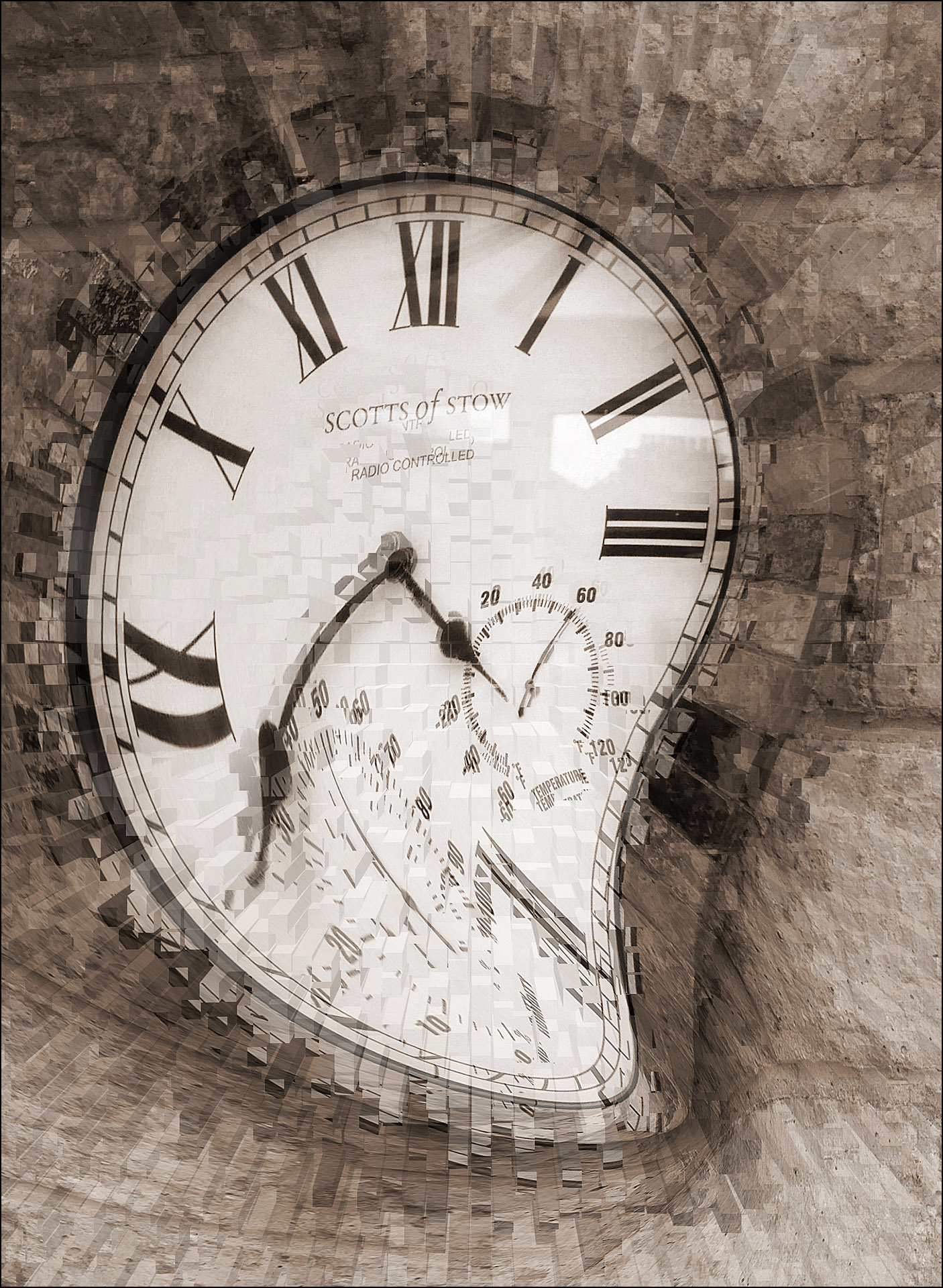 Hazel, When I first saw your image, I wasn't quite sure what I was looking at. I could see the stained glass window and the crucifix on the altar in front of it but what was the human-like shadow towering above them? Because I didn't fully understand what I was looking at, this drew me in to the picture and encouraged me to engage with it. Of course, when I read your summary of the image, I realized that the brown humanoid form was in fact was a faded image of the Grim Reaper and then it all made sense. I like the way that you have retained detail in the stained glass windows without any blown out highlights. The size and placement of the Grim Reaper works well and links the various elements of the visual story. There is an interesting radial tactile quality to the picture that I find most appealing. Well done. |