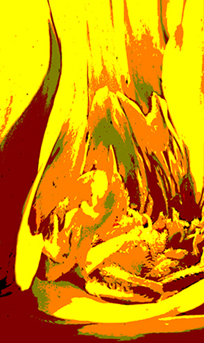 Henry, This is one of those images that reminds me of a Giles cartoon; the more I look, the more I see. Equally, it also makes me think of a Rorschach Ink Blot test used to examine an individual's personality characteristics and emotional functioning. Looking at your image would suggest that I am totally dysfunctional! One of the main issues I have is that it is very busy and arguably there is too much in it, with no obvious focal point. Perhaps it needs less visual stimuli to avoid saturating the senses. There are many areas of your picture that I am drawn to, two of which are shown below to provide a flavour of what I mean. In these iterations, I have cropped onto areas of interest and/or flipped horizontally/vertically. The limited palette from the warmer end of the colour spectrum works well. |