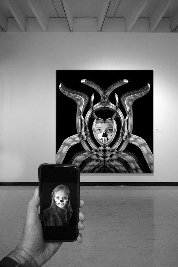 Tom, I applaud you for pursuing your passion to create an image with disparate elements that had no obvious connection with each other at the outset. Your technical skills are an exemplar to change an ordinary fork into a mythological Medussa-like structure. This works very well and with your grand-daughter's repeat portrait, provides a good focal point in the overall visual story. Compositionally, there is a good lead-in line along your arm not only towards your mobile phone but also the main picture on the wall. I find the partial picture on the wall to be a little distracting from the main storyline and I have removed it in the attached version. It is interesting how my eye oscillates between the pictures of your grand-daughter on your phone and on the wall. |