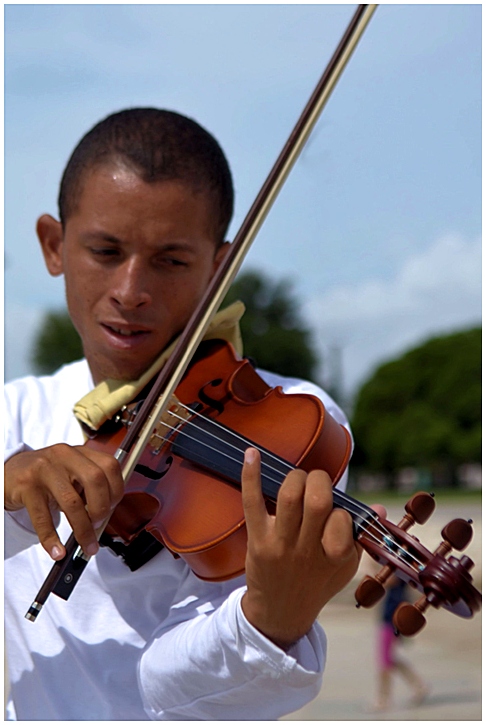 Yes,I agree that the face of artist is not sharp.Some tree,electrical post make distraction.So,may I crop and put some more contract.I do like this ,if you don't like.