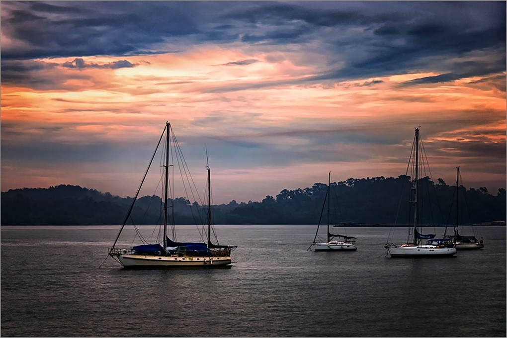 The sunset on the beach is always attractive.I like your picture.I agree to eliminate the red buoys,and fix a little sky color.
