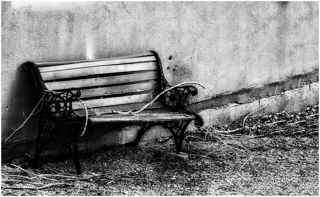 I am sorry to convert your picture to B/W ,because the bench looks like abandoned,and I made more space on the right. |