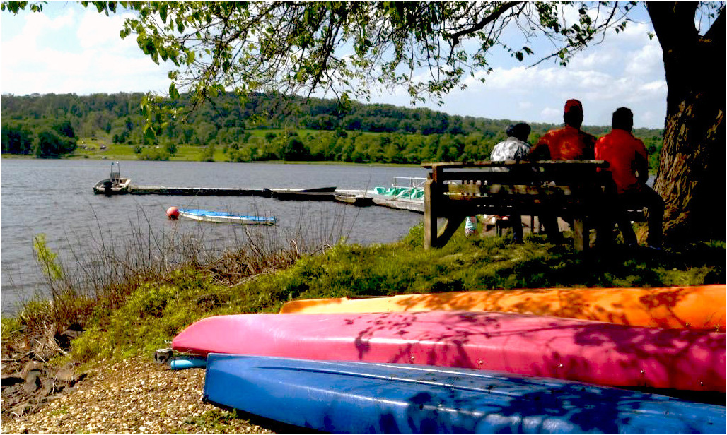 Your picture is sharp and nice.Your title is "Enjoying a summer day"so I suggest to crop the top and contrast to bring up the the colorful boats...If you don't like,I am sorry. |