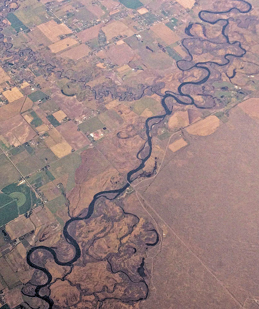 Gary - you are right about the beautiful and abstract scenes one can see from an aircraft. Cell phones now have amazing cameras and your captures support this. You positioned yourself very well and the only concern would be - when did they clean the plane windows last. The image shows a wonderful river system running diagonally and the only improvement to this image would be additional contrast such as I posted. [The 'original' is another image and not directly related to the first - but, once posted, I couldn't remove it.] |