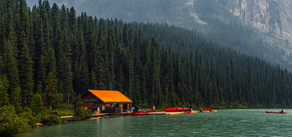 Along with Shirley's suggestion, perhaps you might feel that this is a better approach. I still haven't been to Lake Louise so maybe I am not qualified to make any suggestions. My wife is bugging me to go there but I am reserving that trip for the 'easy ones' when the harder ones become impossible. Meanwhile, perhaps moving the canoers closer to the foreground and enlarging them might fill in the water area a little better. |
