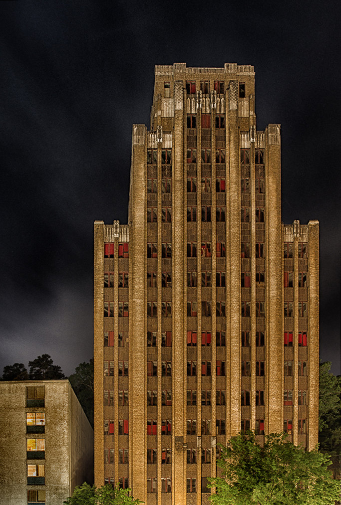 I thought that this building looked familiar. Too bad you missed Superman coming out of one of the windows. However, although the building sides are vertical, the lines of the windows are not horizontal. I added some perspective correction to straighten them up and darkened the smaller building. I don't know whether you would agree, but I think I like this a little more and Superman will not loose his balance on a window ledge. |
