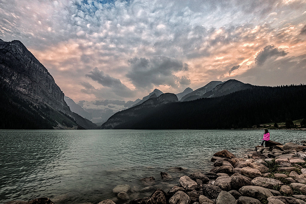 It is a very tranquil scene and the composition of the image is very good. My feeling is that the pink lady's jacket color is too bright for the image - perhaps a better balance could be achieved if the rest of the scene was brightened a bit and I attach my proposal. |