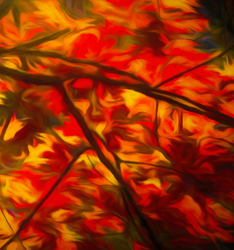 I love the abstract nature of this. I love that I can tell it is foliage. The sweep of your processing choices makes it seem as if the leaves are slowing moving. I like it as presented but would also like to see how you would like it if you cropped out most of the green areas from the top of the painting. Either way, I love this. Great painting. |
