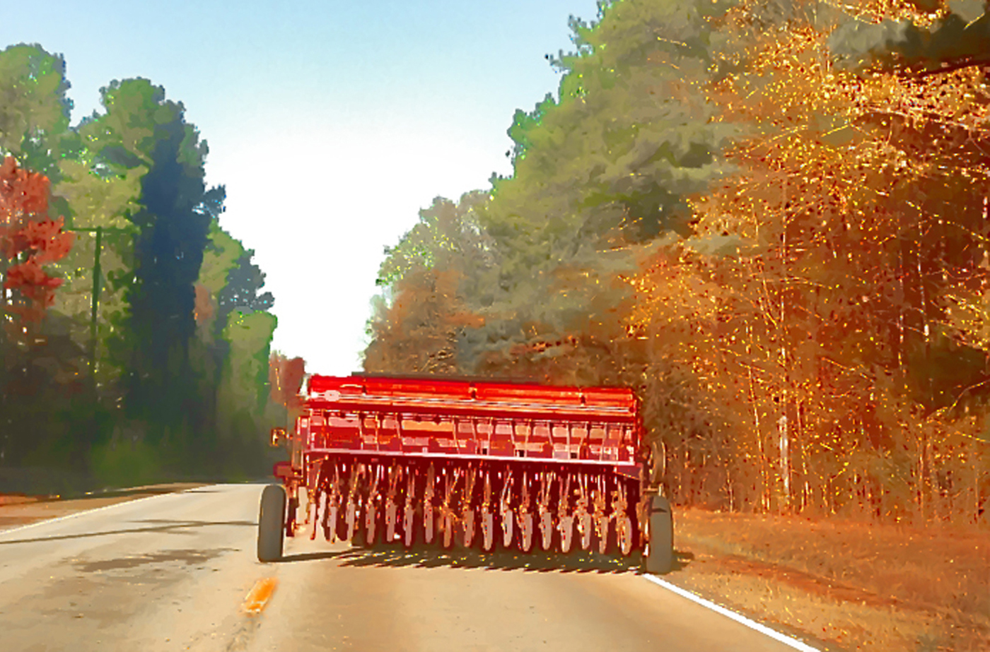 Your post processing choices made this image impactful with contrast and color. I especially love the "road hog" and the trees on the right. Those orange trees seem to have come alive and are dancing in the wind. Because my eyes are drawn to the road hog and the orange trees, there might be an additional crop that will bring more attention to those areas. I tried cropping it, and am attaching it here. I like both versions, so it's really a matter of personal taste. Ultimately, I really appreciate and envy your eye to take this image. Great work. |