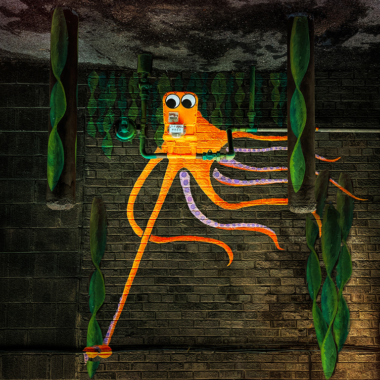 Hi Trey.... I read the title of your image and was singing the song before I even saw that you included the lyrics! I love, love, love all the tonalities in your rendition. I would not change any of your processing choices, as they are excellent. And I truly love your awesome results. What do you think about flipping the image? I've attached a version that is flipped, and I also "copied" more of the seaweed. When it's flipped, the original ground now looks like the top of water, as the octopus floats below the water. It's, of course, a matter of personal preference; see what you like best. |