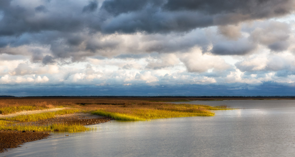 This is very pretty image. Great colors. I like they way the sun is illuminating the grass. I flipped the image to see what it would look like. We read from left to right.... so when I look at this image I start from the left. I also dodged in the left corner to take the water out of the shadows. |
