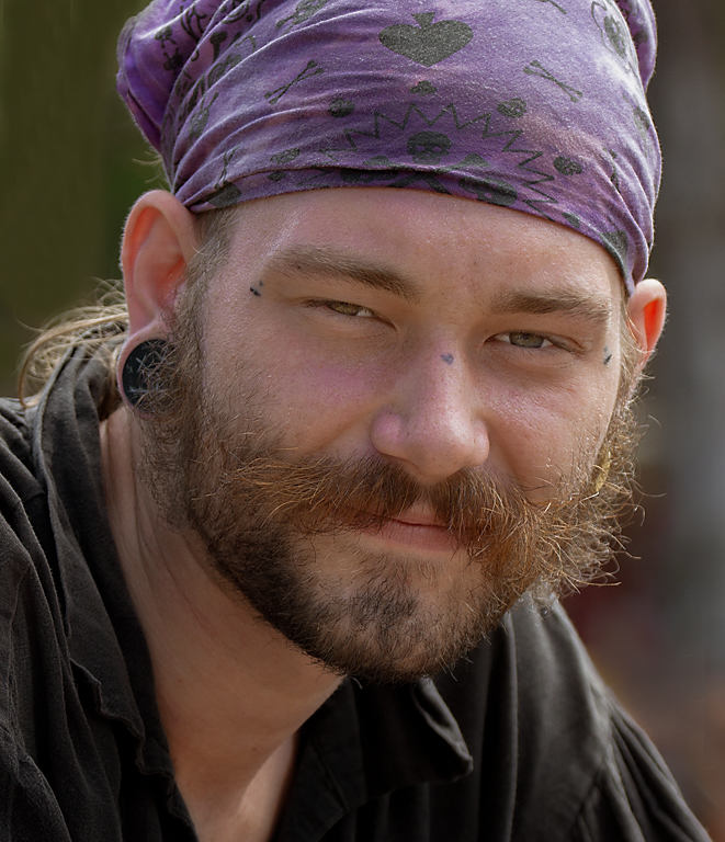 This is a very good portrait of this good looking man. Love the lighting. I just darkened the shirt and the bandanna and made the white in his eye a little brighter. He has beautiful eyes. Great image. |