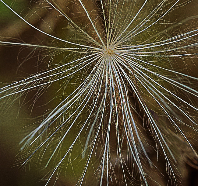 I really love this image. Great tones in the background and contrast is very well done. I cropped the image to get rid of the destructions of the dark limbs. I like the detail of the milk weed seed. I did sharpen the image to be able to see the little hairs on the the seed better. |