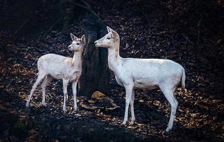 This is a Fine Art group and I am new at Fine Art Images. So, if you feel like I am going in the wrong direction I understand. I feel like all the attention should be on the rare white deer. The greenery did not need to be added. I went into Photoshop and toned down the item that is between the two deer on the ground. I just brought the hi-lights down. |