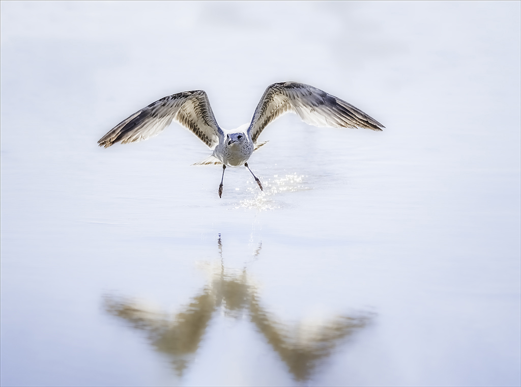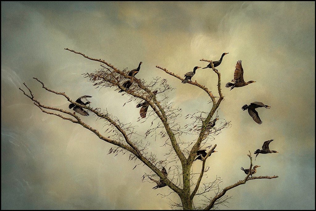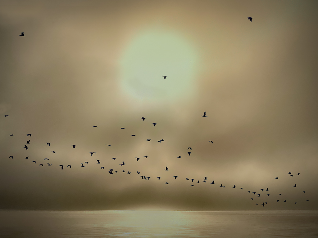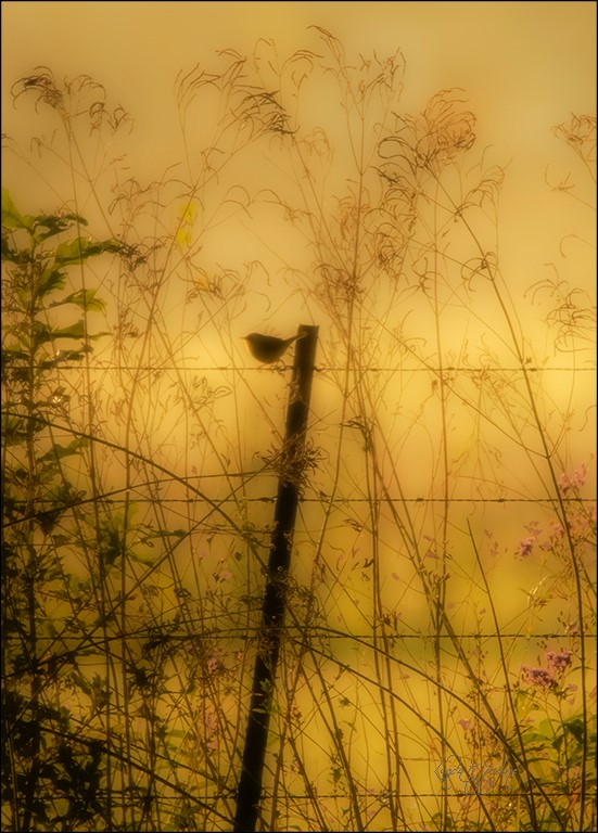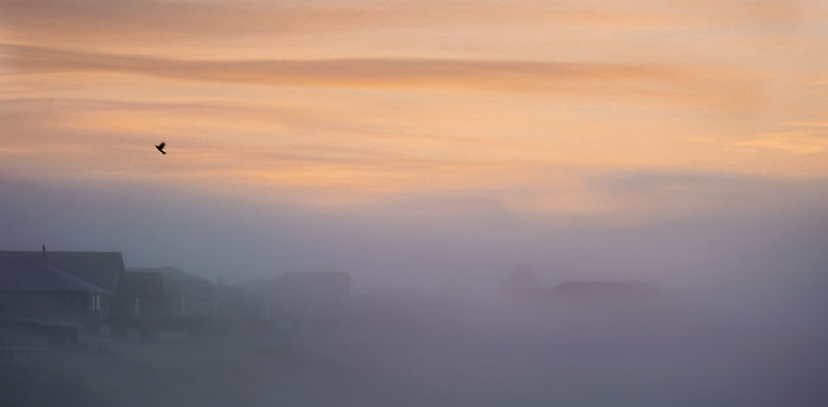 I love foggy days. Fog is so moody. I don't know if the bird adds anything to this image. I cropped the image. I was trying to bring out the colors in the horizon. |
