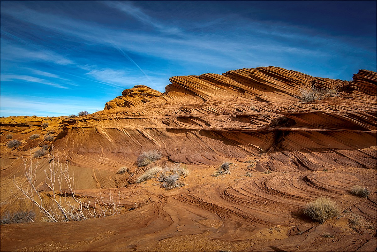 Replacing the sky did add to the over all image. I cropped out part of the sky. I flipped the image. I want my eyes to look down the the palms to get to the background. The way it is now I am bypassing the palms. Love the beautiful textures and rust and orange colors of the grasses. There is a lot to look at in this image. Great story. |
