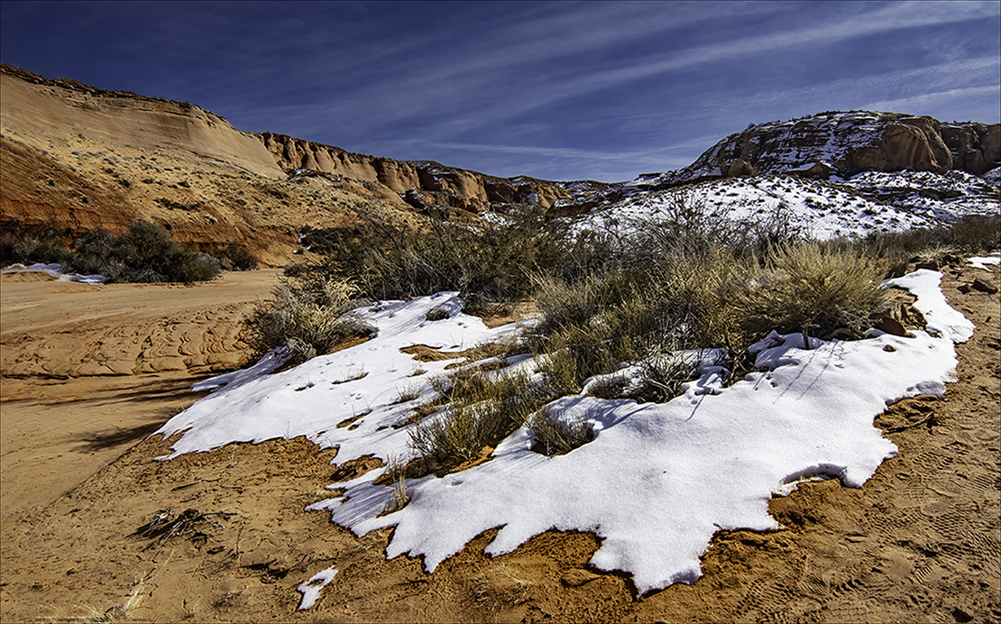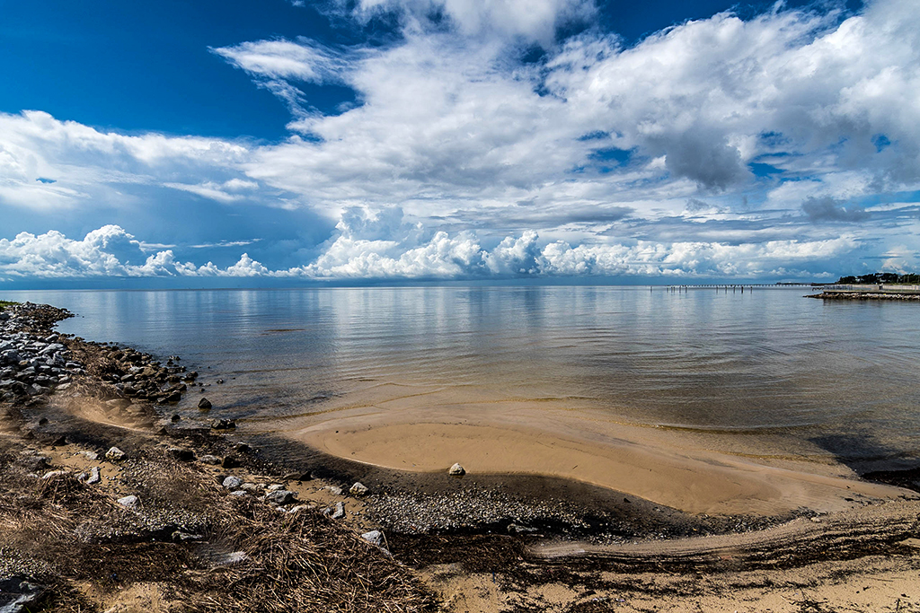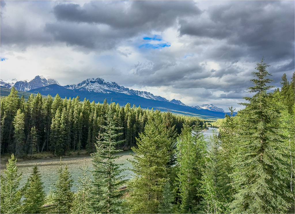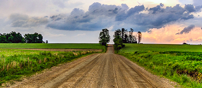I really like this image. Love the Greens and Blues. Great leading line. Good image to document this location and what was happening. I would work on making the story more dramatic. First, I thought about what is my subject, the sky or the road. I chose the sky, because you said you started to see the clouds slowly rollin in. I darkened the road, (leading line) and then I darkened the sky to making it more dramatic. I have a visual image. |