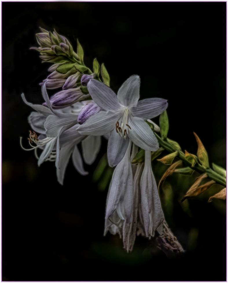 Connie, Beautiful image. You did a great job on the processing this image. I have a visual image just for a suggestion. I went into camera raw and used the colors and made the greens greener, yellow and purples richer and brought in some vibrants. I took out some of the texture and made it a little softer. I took the clone tool and tried to take out some of the blemishes on the flowers and the leaves. Love the colors and the different stages of life in this flower. Great Job. |