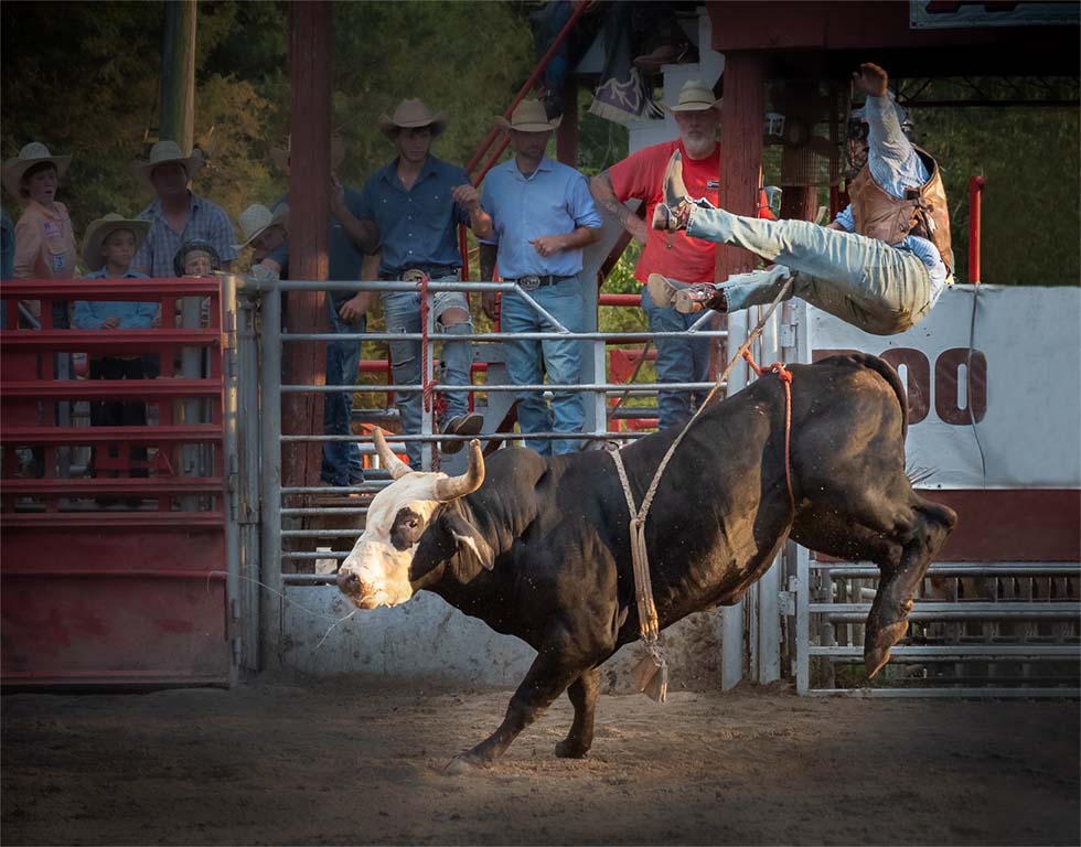 Lane, Love the action and center of interest. I just gave the cowboy more room on the right side in photoshop with content aware. I used a radial filter in camera raw around the action and inverted it to make the background darker. Great catch. |