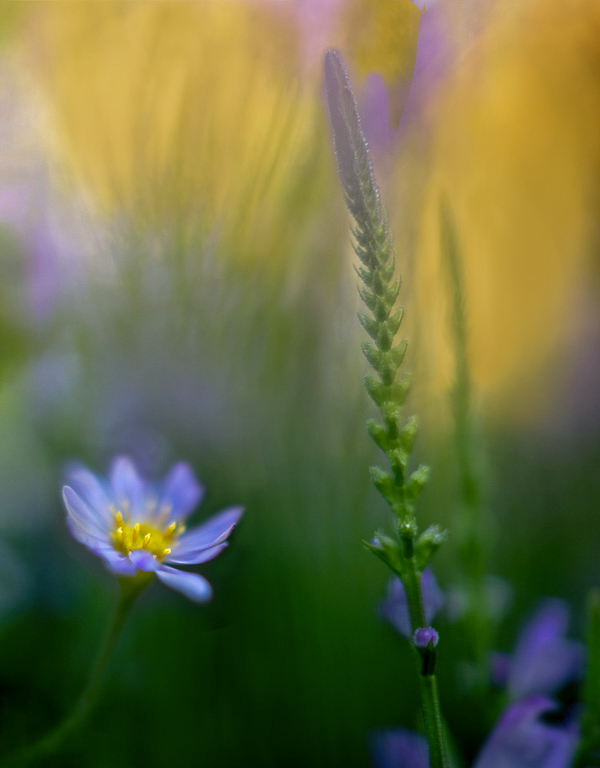 Congratulations on your awards you won on this image. Beautiful color contrast and I like the way the three flowers is leading up the the main subject the big flower. I hope you don't mine if I work on this image just a little. I love these flowers. Everyone has their ideas. I added more room on the image and remove the border. I ran it throught Topaz sharpen and I used Photoshop Camera Raw and used a mask to darken the background just a little to have the flower pop more. |