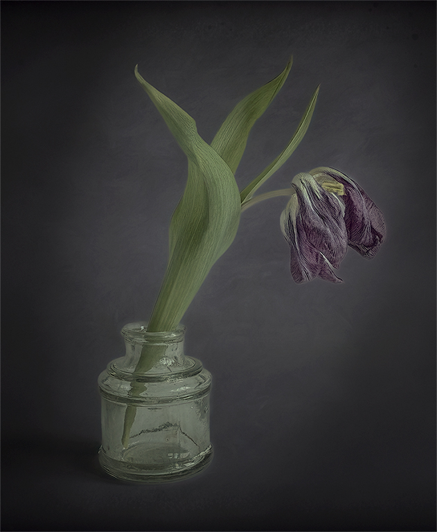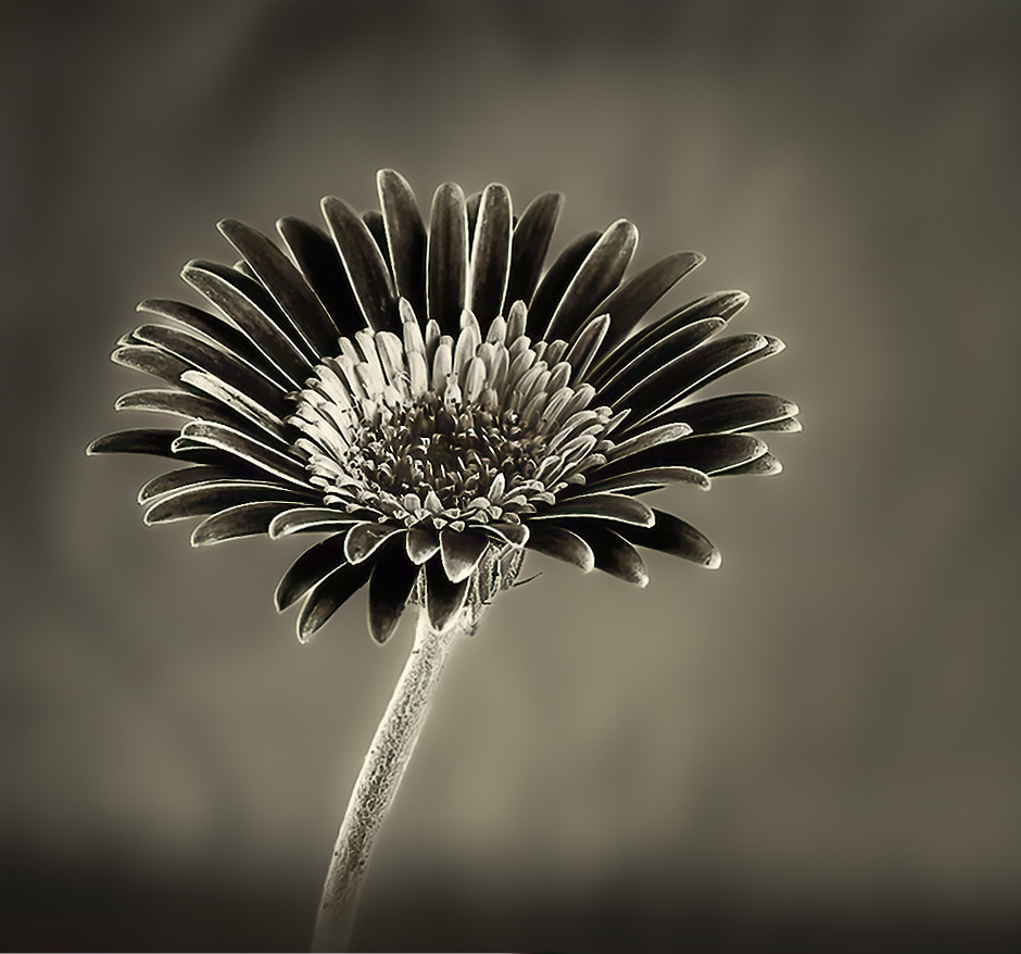 Barbara, I love what you started with and finished with a beautiful black and white. This image is very minimalist. Love the the tones. I have a visual feedback. I darkened the background to give the image a little more pop and cropped the image. |