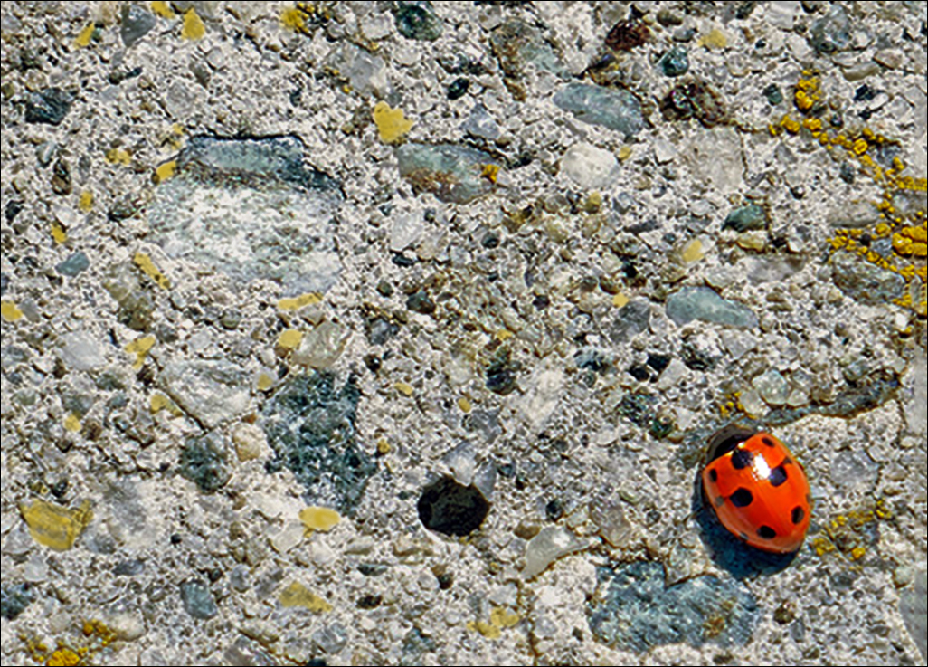 Hi Mary, This is a great catch. Love the contrast. Really like all the colors in the concrete path. The Ladybug really stands out. I do have a visual feedback. I cropped the image to make the ladybug larger. I took a brush and painted in more yellow and blue. I used photoshop and camera raw to darken the background and bring out more contrast in the image. |