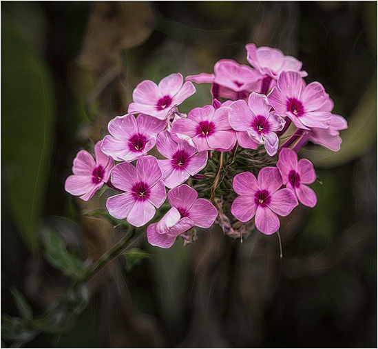 Hi Connie, That is so nice of you to made a book for your neighbor of her flowers. What a nice gift. I love the flowers and the treatment you used on the image. Great contrast and color balance. I have a visual feedback of the beautiful flowers. I used photoshop and camera raw. I used the masking tool on the flower to darken the background and then I used the same tool to give the flowers more pop and contrast. Very nice image. |
