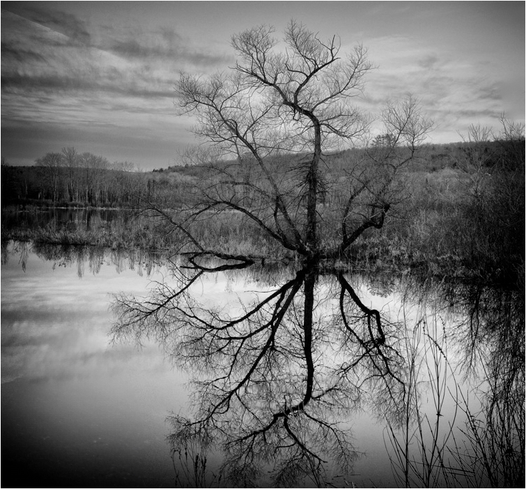 Tom, Very nice image. I really love reflections. I took out the grass on the right side. I felt like the grass would not let me enter the image. I feel like there is too much vignetting. It is little like salt, you can sometime use too much. I use photoshop and camera raw and selected the sky and darkened it a little. |