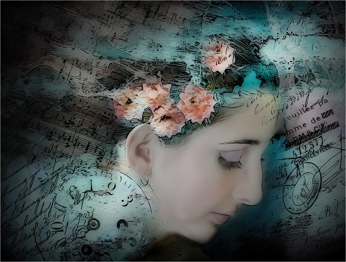 Jan, I would love to learn how to do this. This image is beautiful I think the colors and the thoughts you put into this image does show. There are just a few things I would look at changing. One I like the look of the face with no texture. You have her skin looking too pretty. Before I read Denise's feedback. I added to the bottom of the image and cropped some of the top. This is a winner in my book. Keep up the great work. I have a feedback. |