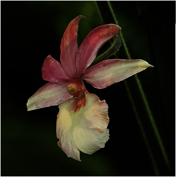 Connie, Great catch. Love the colors. I crop the image a little and gave it a little tilt. I used Topaz DeNoise. The image looks a little soft and grainy. I went into curves and put the slider at medium contrast. I brought down the highlights. The image has a large hot spot on the bottom petal. This is just some suggestions. I used photoshop and camera raw. |